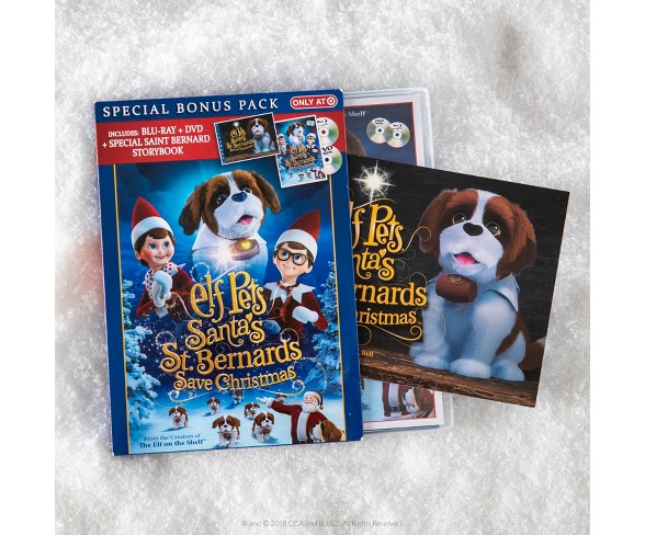 Description Get into the holiday spirit with your little one this season with this Elf Pets St. Bernard DVD and Book Set. In this sweet Christmas story, Santa discovers that there's not enough Christmas spirit to make Christmas magical. With the help of the Scout Elves, a pile of St. Bernard puppies and a loving family, Santa helps the community pull together to save Christmas. Your child is sure to love this feel-good Christmas movie, and it comes with a copy of the book for extra engagement. Length of video is 26 minutes.Age Range: 4-8 yearsLanguage: English Estimated shipping dimensions: 5.375INCH X 6.75INCH X 0.5INCH DPCI : 059-03-0643 UPC : 814854011408 TCIN : 53621722 Estimated shippimg weight: 0.375POUND