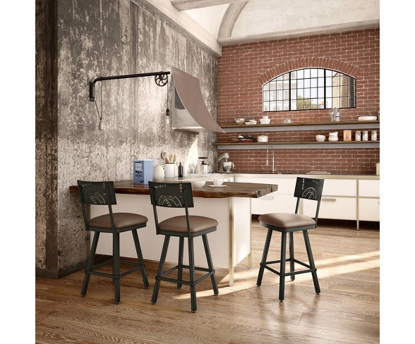 Features: Square (shape)Number of Pieces: 1Seats up to: 1Dimensions (Overall): 26.5 inches (H) x 17.75 inches (W) x 20.5 inches (D)Material: Steel (Frame)Weight: 26 poundsMinimum Height, Floor to Seat Top: 26.5 inchesMaximum Height, Floor to Seat Top: 26.5 inchesUpholstery: UpholsteredMaterial: Textile 1: PolyurethaneAdjustability: FixedSeat Dimensions: 17.38 inches [W] & 16.75 inches [D]Care & Cleaning: Spot or wipe cleanWarranty: 10 year limited warranty. To obtain a copy of the manufacturer's or supplier's warranty for this item prior to purchasing the item, please call Target Guest Services at 1-800-591-3869Faux-leather upholstered counter stool with a metal frame adds unique style to your spaceAngled legs, curved back and slender footrest makes for added comfortArmless counter stool allows for easy stowing away when not in use Estimated shipping dimensions: 22.5INCH X 19.75INCH X 28.25INCH DPCI : 249-01-1636 UPC : 776094665141 TCIN : 53677011 Estimated shippimg weight: 36.0POUND