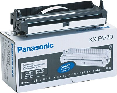 Description This Panasonic black drum cartridge is compatible with KX-FL501/521, KX-FLB751/756 and KX-FLM551 models, and it yields approximately 6,000 pages. This Panasonic black drum cartridge is ideal for KX-FL501/521, KX-FLB751/756 and KX-FLM551 models. The drum cartridge is designed to bring out the best from your device for high quality results. Yields up to 6,000 pages Ink/toner: black Cartridge yield type: standard Print technology: laser Compatible with models KX-FL501, KX-FL502, KX-FL503CN, KX-FL521, KX-FLB750, KX-FLB751, KX-FLB753, KX-FLB755, KX-FLB756, KX-FLB758, KX-FLM551, KX-FLM751, KX-FLM753, KX-FLM755, Panafax KX-FL501, KX-FL521, KX-FLM551 This Panasonic KXFA77D black laser drum is designed for use with printer models KXFL501, KXFL521, KXFLM551, KLB750, KLB751 and KLB756 Offers up to a 6,000-page yield at 5 percent coverage Toner sold separately KX-FL501, KX-FL502, KX-FL503CN, KX-FL521, KX-FLB750, KX-FLB751, KX-FLB753, KX-FLB755, KX-FLB756, KX-FLB758, KX-FLM551, KX-FLM751, KX-FLM753, KX-FLM755, Panafax KX-FL501, KX-FL521, KX-FLM551 Specifications Cartridge Series : Panasonic KX-FL501 Yield Type : Standard Yield Page Yield (Up to) : 6,000 Ink/Toner Pack Size : 1/Pack Ink/Toner Cartridge Type : Original Wide Format Compatibility : No High Yield : No Multipack : No Brand : Panasonic Customizable : No Weight : 2.30 lbs. per Each Compatible Printers This product is compatible with these printers: Panasonic Panafax KX-FL501 Panafax KX-FL521 Panafax KX-FLM551 KX-FLB750 KX-FLB751 KX-FLB756 KX-FL502 KX-FL503CN KX-FLB753 KX-FLB755 KX-FLB758 KX-FLM751 KX-FLM753 KX-FLM755