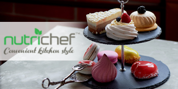 Nutrichef Two Tier Slate Cake Stand - Round Multi Tiered Tray Serving Plate, Cupcake Holder Display, Dessert Tower, Fruit Platter w/Stainless Steel Rods and Handle, For Wedding, Birthday - PKCKSTD10
