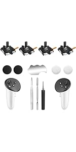 The Joystick Replacement Kit for Oculus Quest 2 includes two high-quality 3D thumbsticks, a T5 screwdriver, tweezers, a pry tool, and four thumbstick grips. Designed for easy installation and durability, this kit is perfect for repairing damaged joysticks on your Oculus Quest 2 or Quest 3 controllers, ensuring a seamless gaming experience.