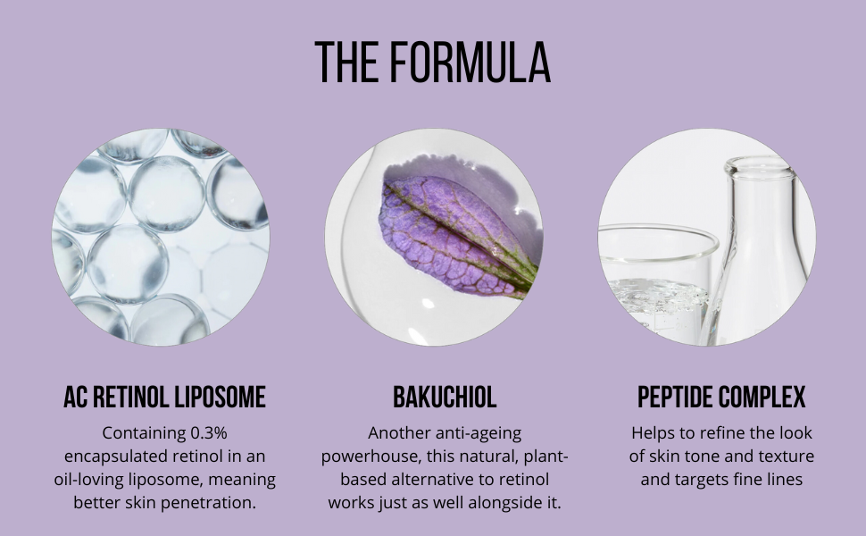 Time to upgrade your beauty sleep. We’ve made the switch from retinyl palmitate to ultra-effective encapsulated pure retinol. This high-performance, balm-like serum is now powered by a 3% time-release retinol complex with 0.3% AC Retinol Liposome encapsulated pure retinol for effective skin penetration, plus a peptide complex to target fine lines and wrinkles and help to improve skin tone.