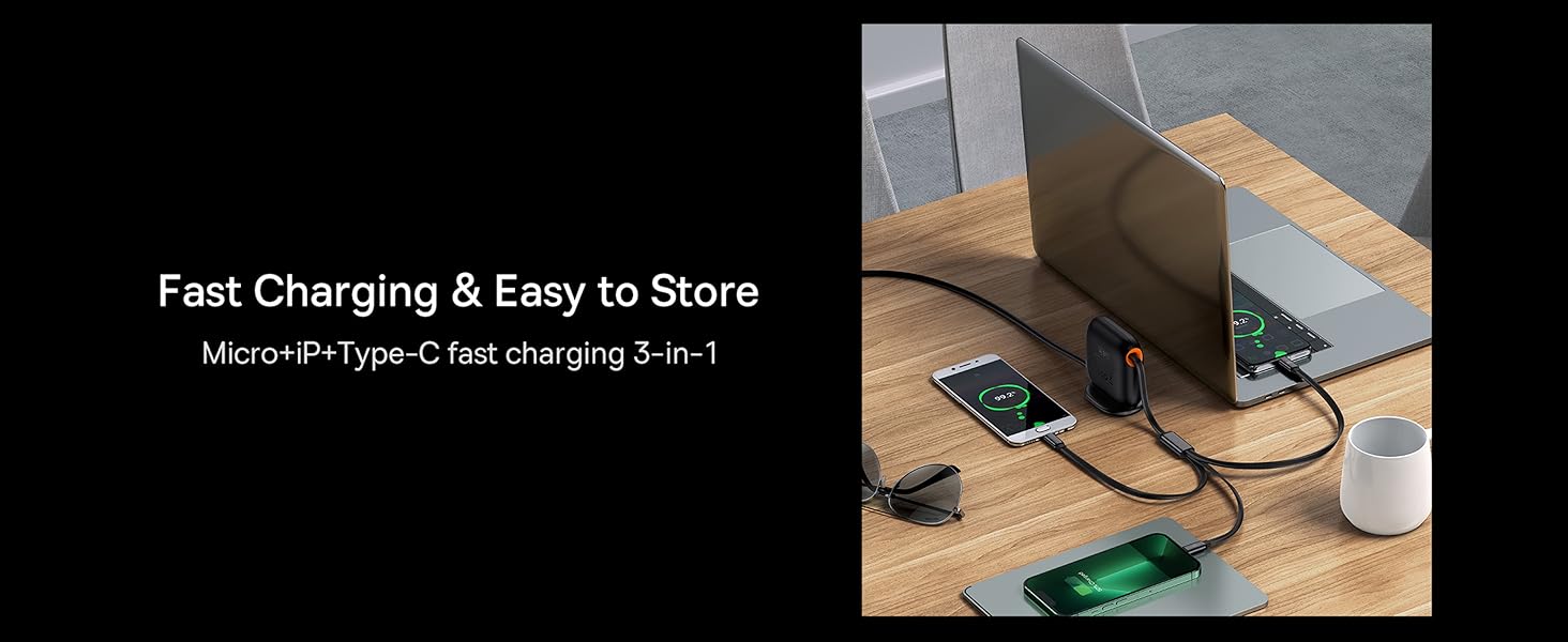 Baseus 3 In 1 Fast Charging Cable 100w Retractable 1 | Desertcart Spain