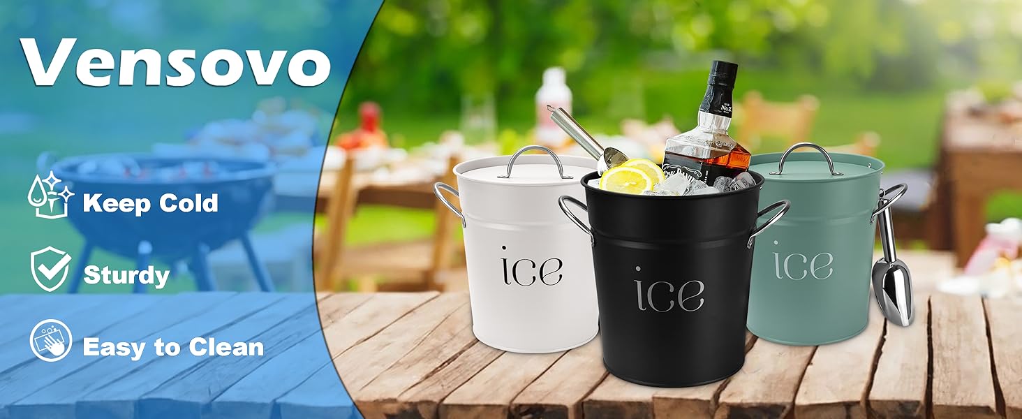 3qt Black Galvanized Ice Bucket With Lid Scoop And Handles | Desertcart Spain