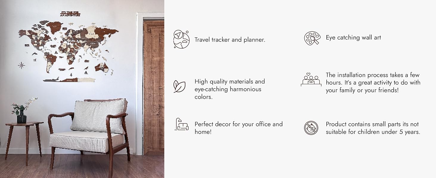 Multilayered 3d Wooden World Map Travel Map With States Capitals | Desertcart Spain