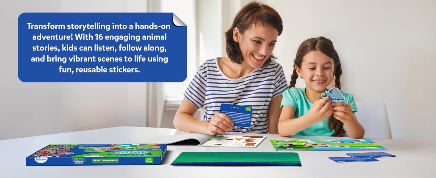 The Skillmatics Activity Kit offers 16 double-sided story cards, 150+ reusable stickers, and sturdy backdrops designed to spark creativity and develop essential early learning skills like listening, sequencing, and critical thinking. Lightweight and mess-free, it’s perfect for preschoolers and kindergarteners aged 3 to 7 seeking educational fun without the hassle.